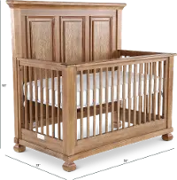 This 4-in-1 convertible crib is solidly crafted and finished in a nutmeg hue, enhancing its warmth and beauty. Its handsome appeal and timeless attention to detail will be a welcomed addition to your home for years to come.