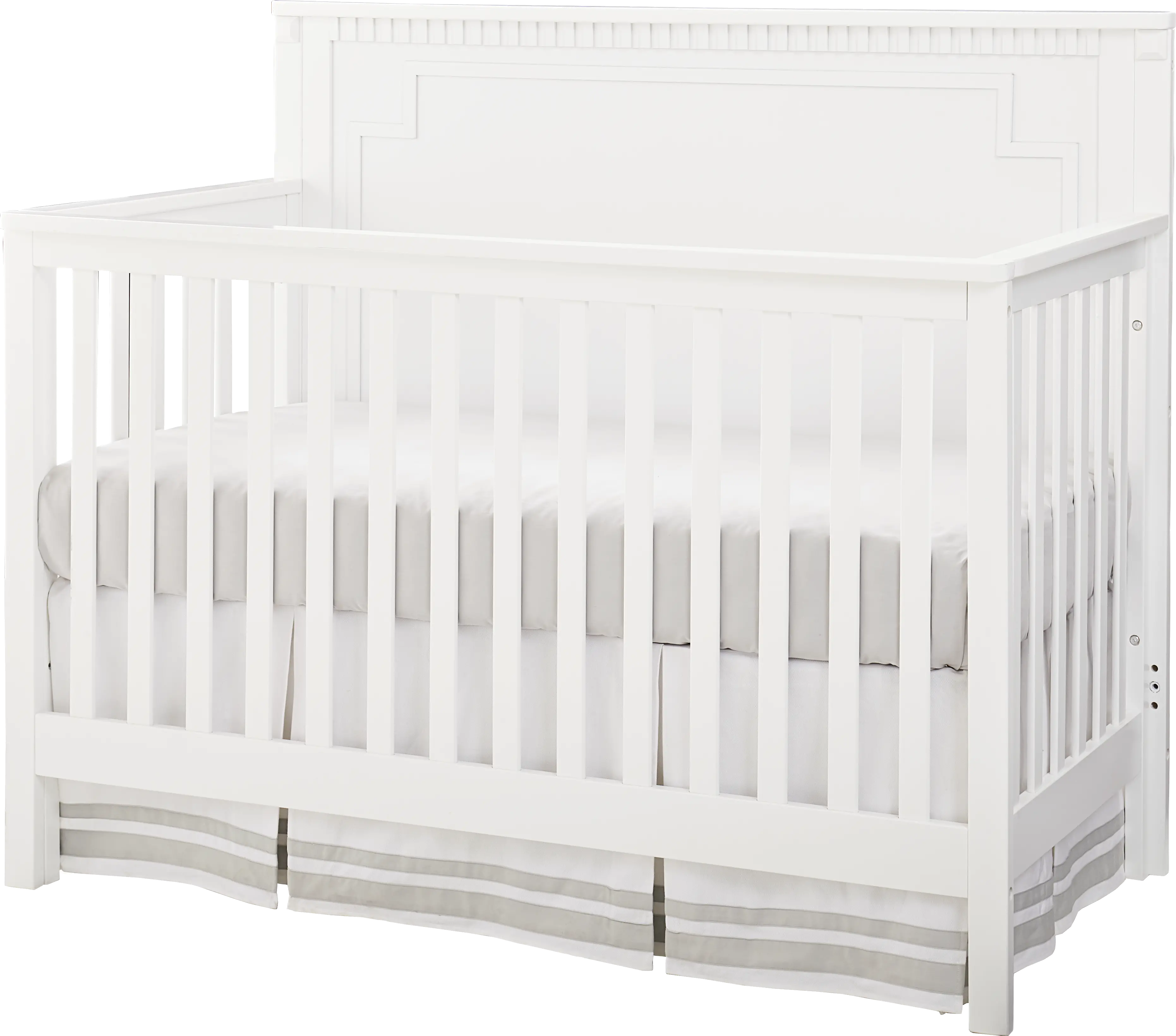 Sturdily built, this 3-in-1 convertible crib features clean lines with antique-inspired detailing and is finished in a crisp and classic white. It offers 3 adjustable mattress heights for your growing baby, and when your child is ready, it easily converts from a crib to a toddler bed and then a full-size bed.