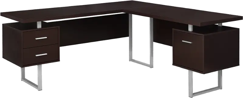 With a cappuccino finish this 60 inch L-shaped office desk from RC Willey features timeless look and a simple yet effective design.