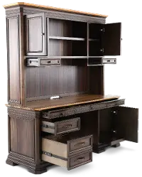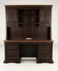 If you want to center your office space with a strong, traditional show-stopper, then this is exactly what you're looking for. The mahogany and alder wood provides strength that will last a lifetime, while the rich, coffee roast finish highlights the natural wood grain. This credenza also features plenty of storage and exclusive features for all your work from home needs, including three utility drawers, one locking file drawer, a pullout printing tray, and a drop-front keyboard/pencil drawer. We think this piece would pair perfectly with your favorite book collection, family photos, and other personalized accent pieces!