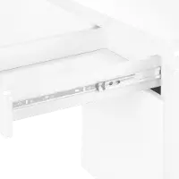 - Sturdy metal legs in a white finish