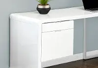 Give your home office a promotion with this extra-large, corner desk in a glossy white laminate finish.