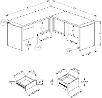 The L-shaped desktop is generously sized with a 1.5-inch-thick desktop leading to a waterfall edge look. A reversible configuration lets you set up the desk with the drawer units on either side as desired. The space between the 2 storage drawers and the cabinet allows ample room to easily move around your workspace. Providing support are robust metal legs in a silver finish. This L-shaped computer desk saves space when used in a corner but is finished on all sides for a polished look wherever it is placed in a home office.