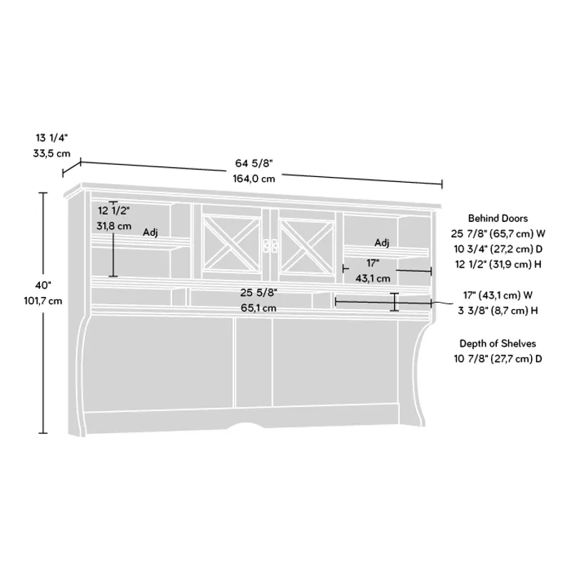 | Hutch Dimensions | 64.625"W x 13.25"D x 40"H |