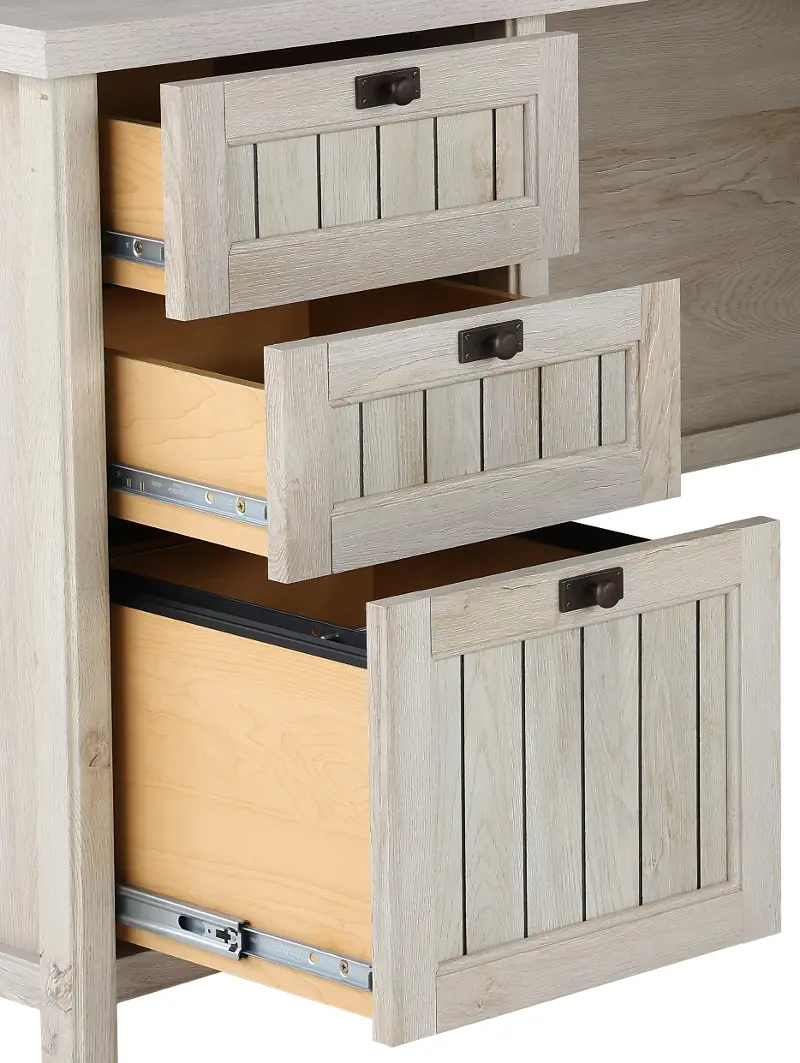 You will love the look of the chalked chestnut finish, and with a one-inch thick desktop, you have a piece that is durable as well. This desk also includes a slide-out keyboard tray, pencil drawers, and a drawer that holds letter and legal-sized hanging documents, giving you a complete solution to your home office needs.