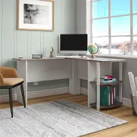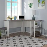 This Desk fits snuggly in a corner to maximize your home office space. The large desk top surface provides plenty of room for your monitor or laptop, as well as papers and other essential office supplies. The L-Shaped Desk even has two grommets built into the Desk to organize and manage your cords.