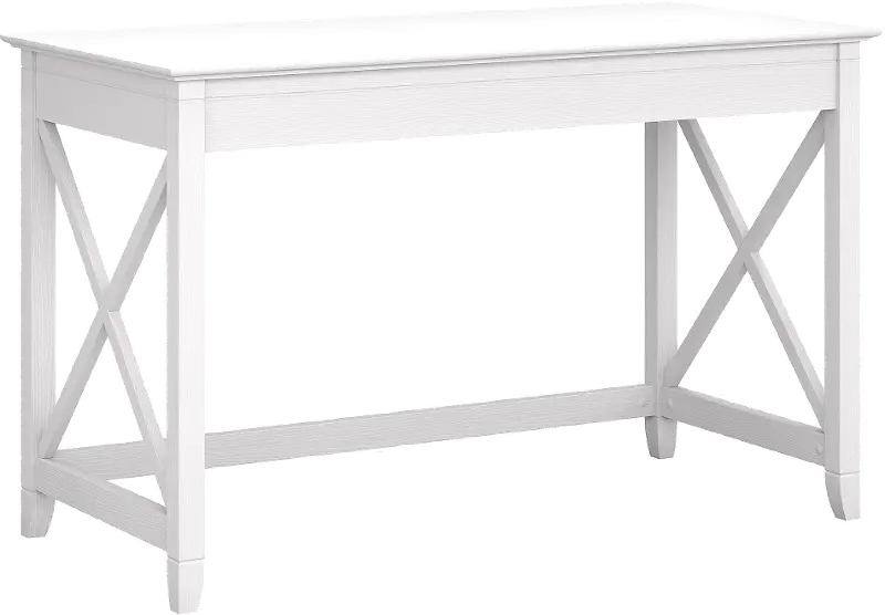 The Key West Collection writing desk for sale at RC Willey offers more than enough room to spread out with a laptop and paperwork as you surf the web, pay bills, or check the mail. Featuring side panels with unique X pattern accents, this office desk creates a relaxed and airy style supported by a sturdy and attractive post leg design. The durable work surface has a weight capacity of 200 pounds so you can confidently keep books and other work materials close by. Measuring 48W x 24D x 30H, this Writing Desk is perfect for use as a sofa table, console table, or personal work area and is finished on all sides to look great facing any direction.