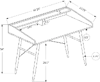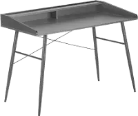 The sides of the desktop gradually rise to meet the hutch for a sleek look. The top of the hutch doubles as a shelf, while the space underneath is divided into 2 storage cubbies where you can tuck away small items and keep your work surface organized. Providing support and stability is a metal base in a black finish and featuring striking design details, like tapered metal legs and slender X-shaped support bars. This laptop or writing table has a compact design and mid-century modern style that is a great choice if you use your living room or bedroom as a home office.