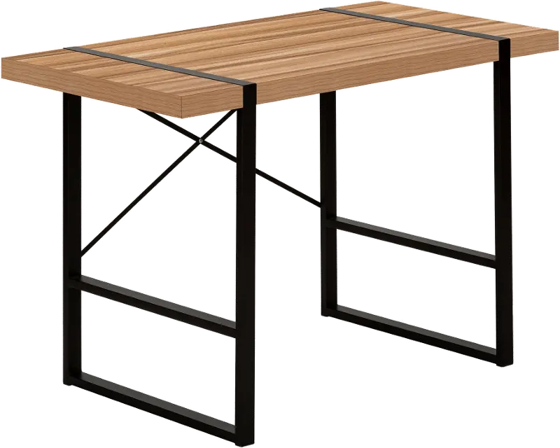 - Robust metal legs in a black finish are incorporated into the desktop for an interesting visual effect