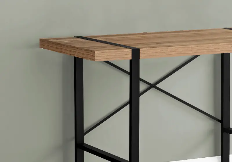 - X-shaped metal bar on the back of the desk provides support and adds a decorative touch