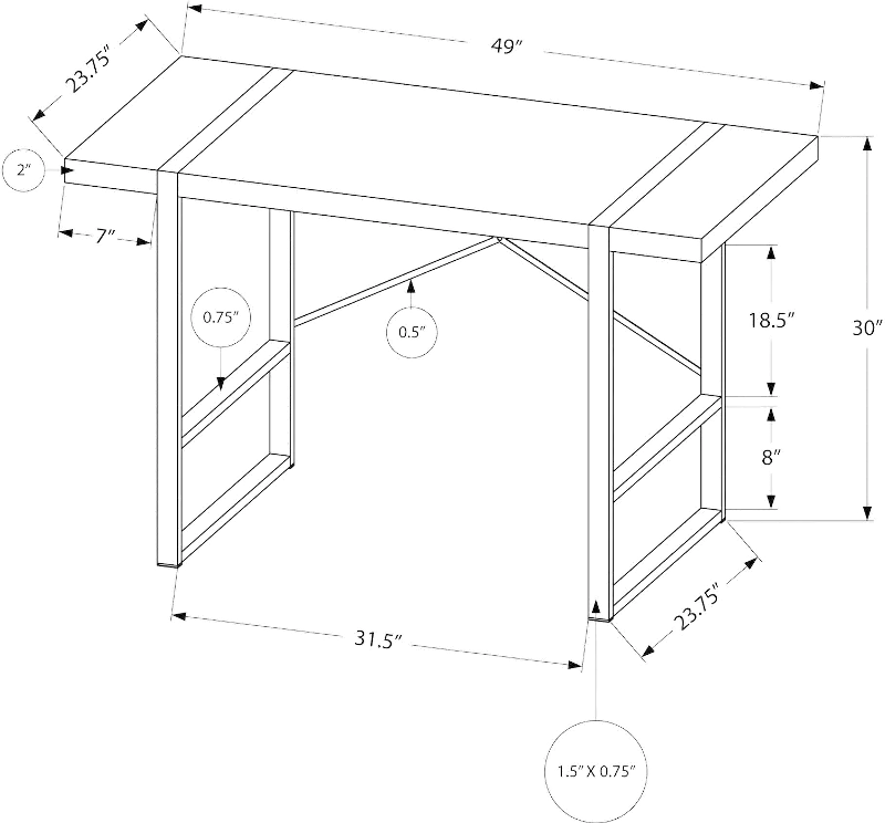 | Dimensions | 49.0"W x 23.75"D x 30.0"H |