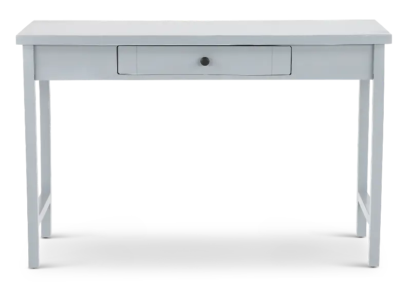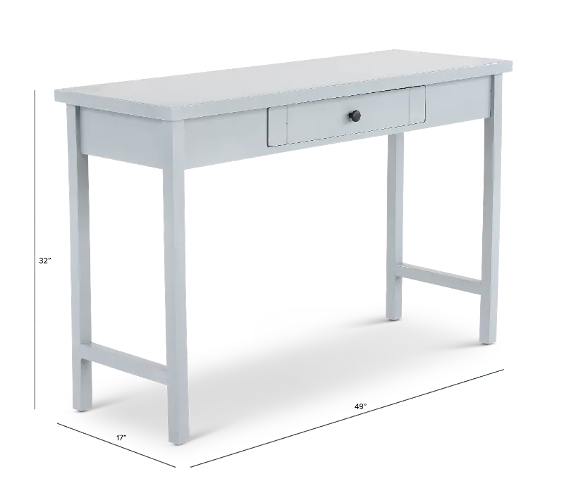 With its sleek gray finish, this compact writing desk from the Elliott collection seamlessly blends with any décor and fits perfectly in smaller spaces.