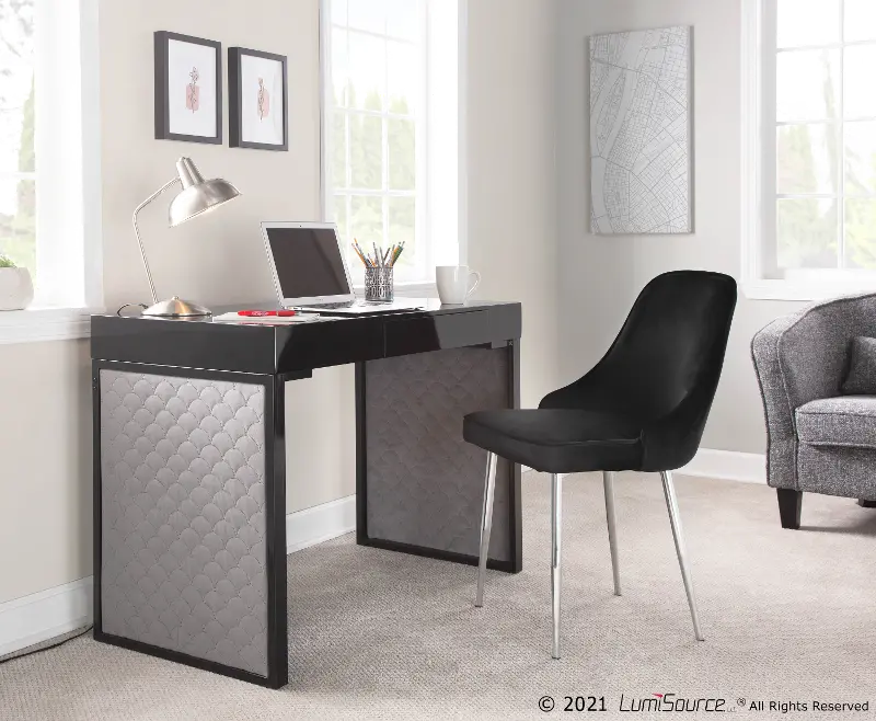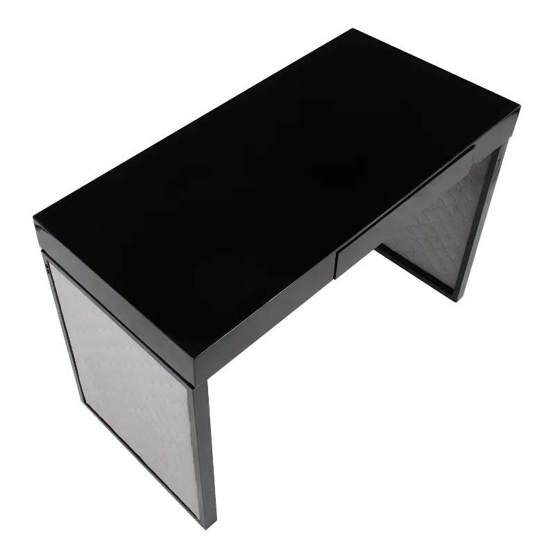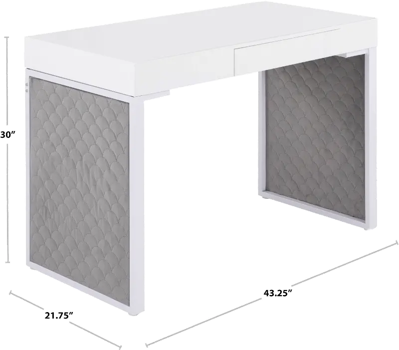 That's why the Drift Upholstered Desk by LumiSource is what you need in your home office. The Drift Upholstered Desk features a substantial wood top with a glossy finish, velvet upholstered sides, a pull-out drawer for extra storage, and a sleek metal base.