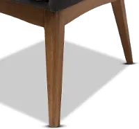 Constructed of solid rubberwood, the Nexus dining chair is upholstered in dark Gray polyester fabric. The splayed leg design sets the stage for a mid-century modern appeal and the comfortable foam padded seat and back are perfect for comfortable family dinners.
