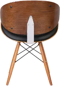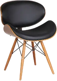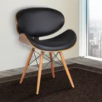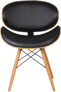This modern dining chair features a softly curved back framed in a walnut wood finish and upholstered with plush faux leather. The Eiffel leg design features metal wires which enhance the support and durability of the tapered walnut wood legs. The Cassie even comes with floor protectors to ensure stability and minimize the risk of floor scratches. The thick medium-firm density cushion seat and back will provide you with all-day comfort and the medium-high open lower back is ideal for posture alignment and support.