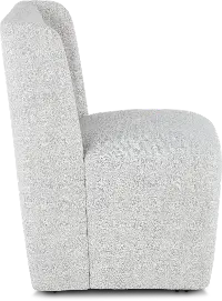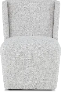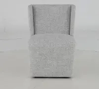 Its contemporary silhouette is beautifully upholstered in a soft cloud gray color. A subtle wing back, convenient rolling casters, and comfortable padding enhance its inviting and irresistible charm!