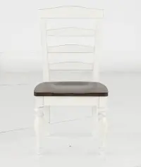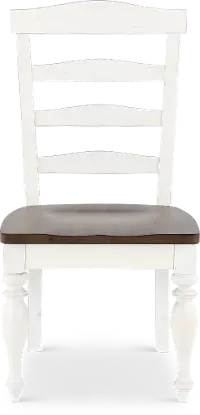 This side chair is solidly crafted, blending white and brown-hued finishes and a ladder-back design for a time-honored heirloom vibe.