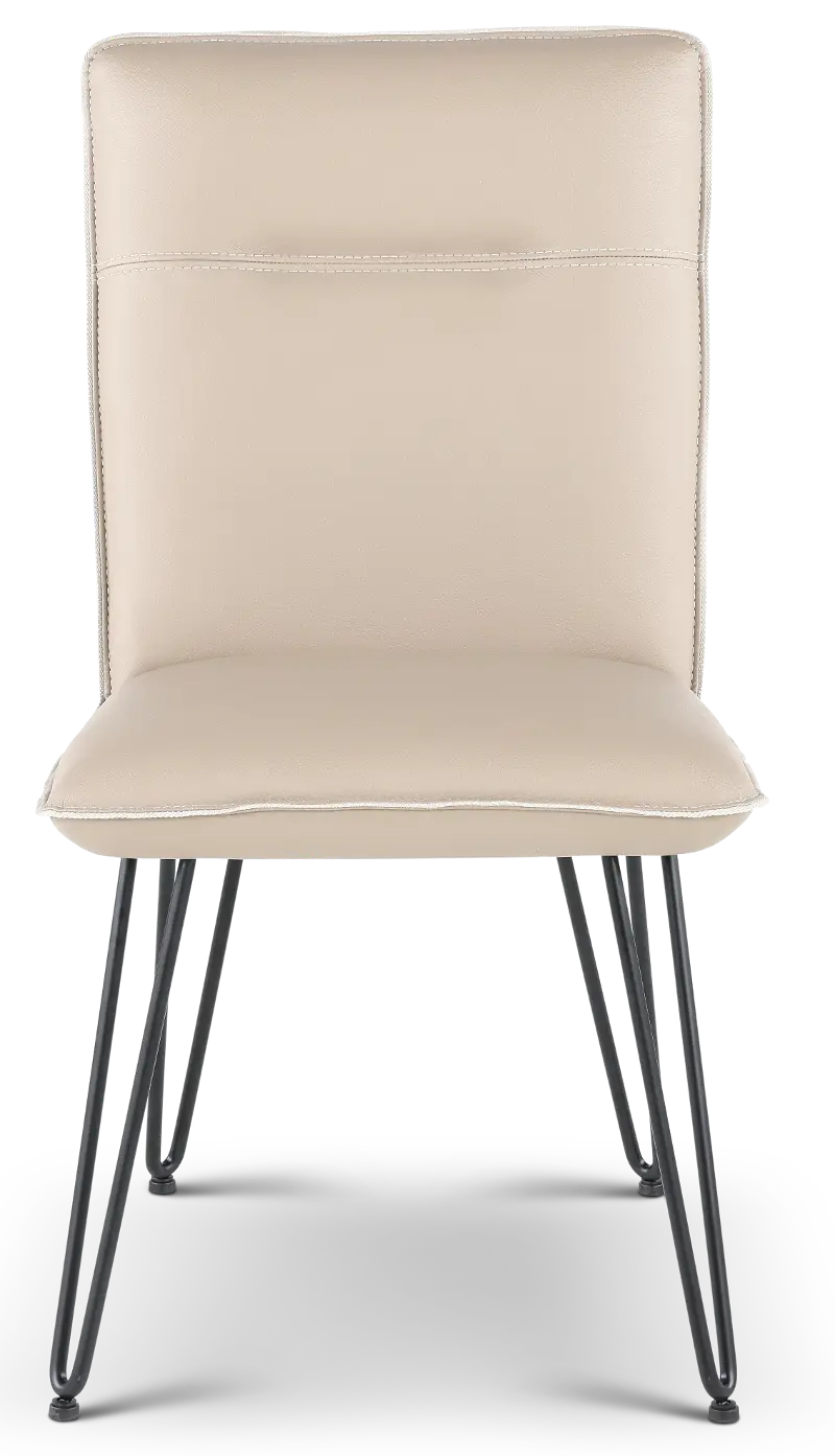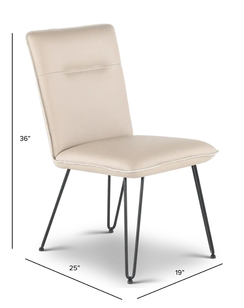 Plush and inviting, this dining chair features hairpin legs, fabric welting, and a textured taupe leather-look upholstery for a casual contemporary look.