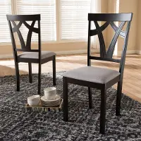 Constructed of a solid rubberwood frame, the dining chair set is upholstered in gray polyester fabric, instantly updating your dining room for an on-trend look.