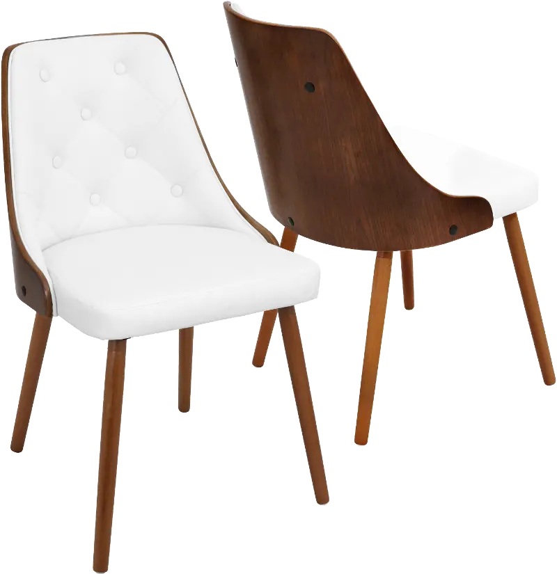 Mid Century White and Brown Faux Leather Dining Room Chair - Gianna