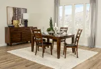 The Kona dining collection sets the perfect backdrop for casual evenings in or hosting a crowd! Solidly built, this dining table features clean lines that are versatile and timeless. A rich and inviting brown finish makes it suitable for a range of tastes and spaces. The included 18" butterfly leaf expands this table from 60" to 78".