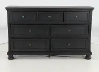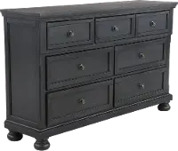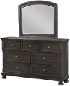 It's expertly crafted from rubberwood and pine solids with Mindy veneers and is topped off with a beautiful buff gray finish. Its 7 drawers offer convenient, eye-catching storage you're sure to love. Mirror sold separately.