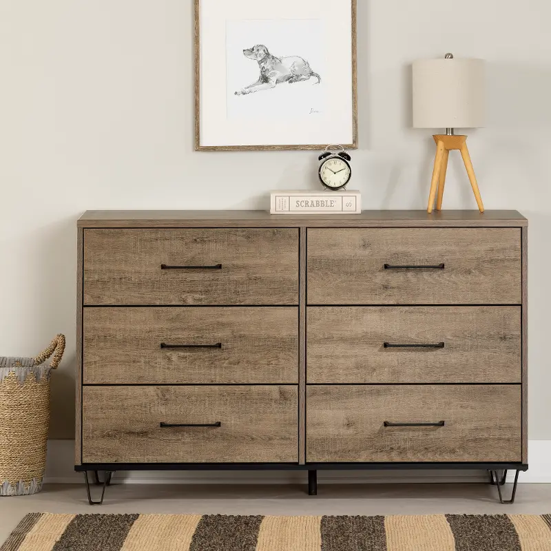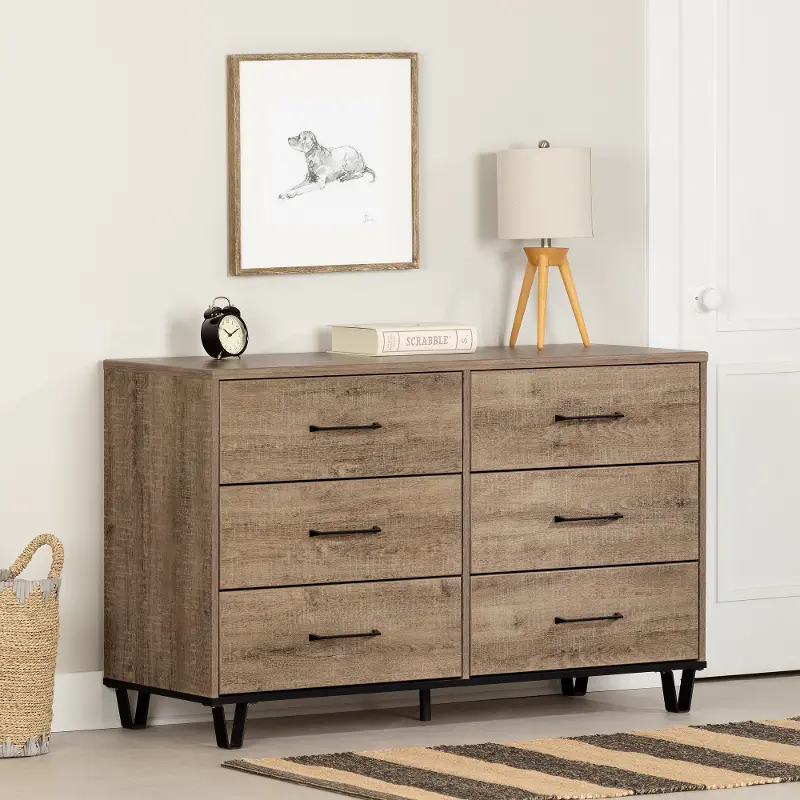 Arlen Weathered Oak 6 Drawer Dresser - South Shore