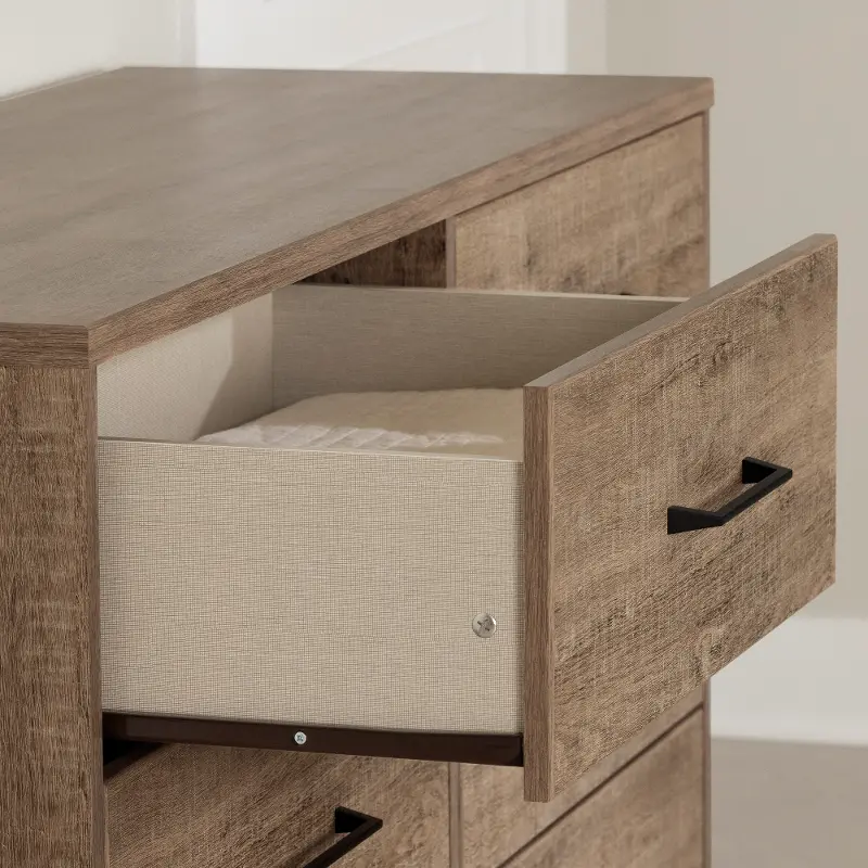 The Arlen Weathered Oak Dresser it provides additional storage in your kid's room.