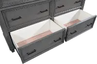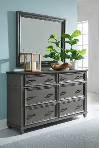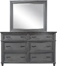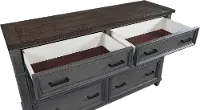 Drawing on classic design elements and farmhouse inspiration, this dresser features an aged slate finish with a contrasting top. Its 6 drawers feature full-extension, steel ball-bearing drawer glides and are adorned with enduring brass bar drawer pulls.