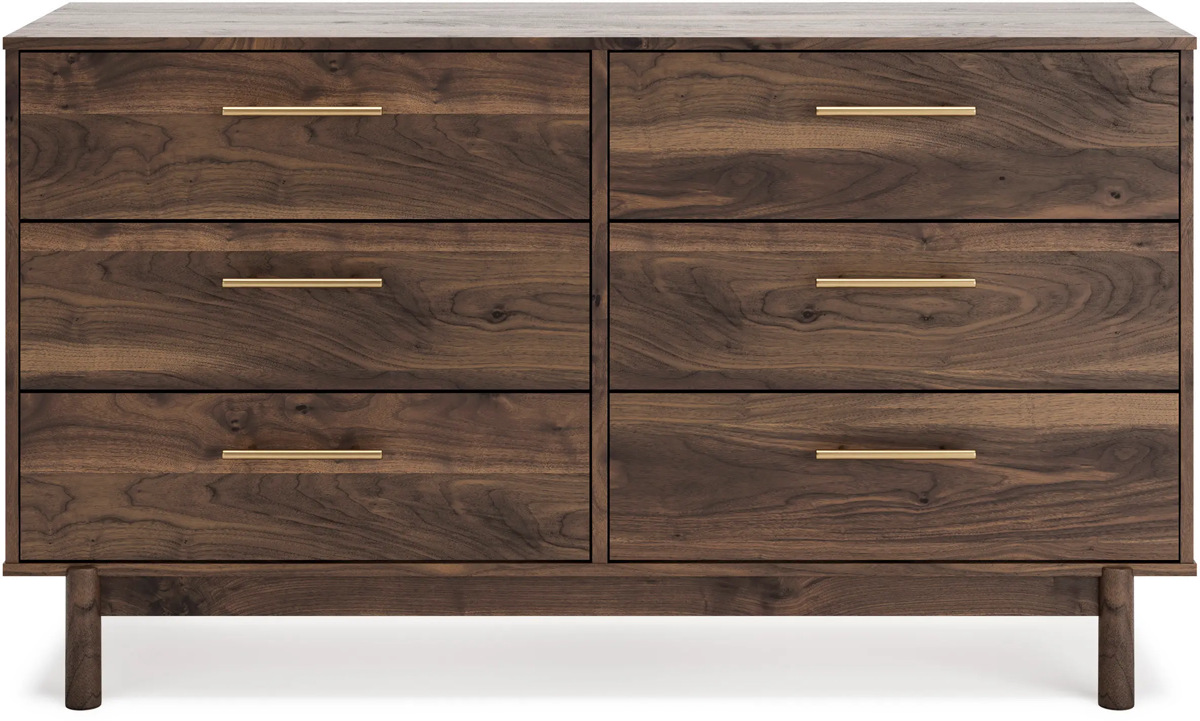 With a rich brown finish over replicated walnut wood grain, paired with burnished goldtone handles, it offers an authentic touch that plays well any way you style it. Simple and elegant in its design, this piece keeps your home decor grounded while elevating your modern style.