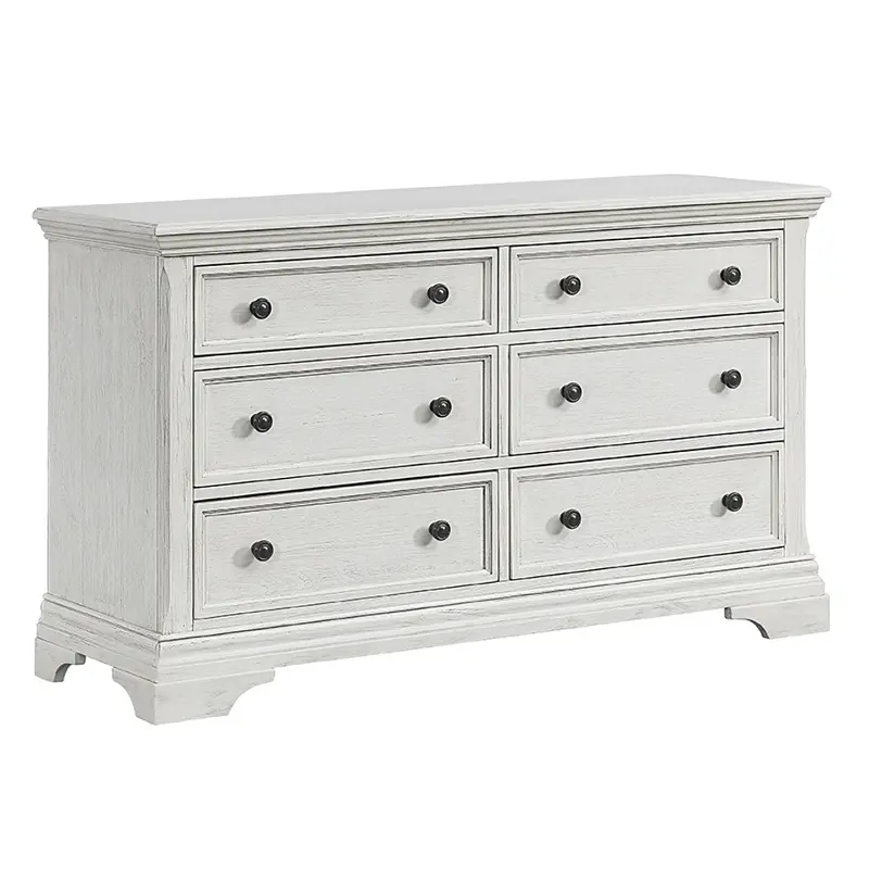 This dresser's sturdy construction, 6 spacious drawers, and vintage white finish make it an ideal option for those looking to add classic design and convenient storage to their nursery.