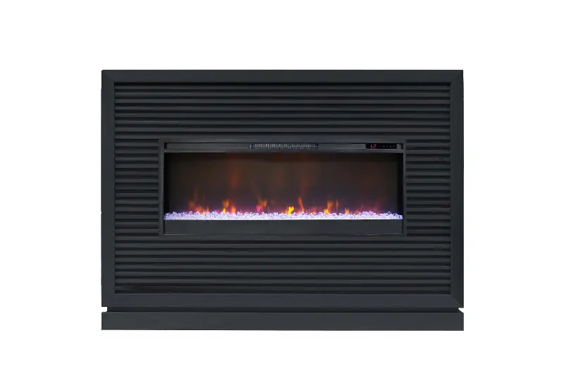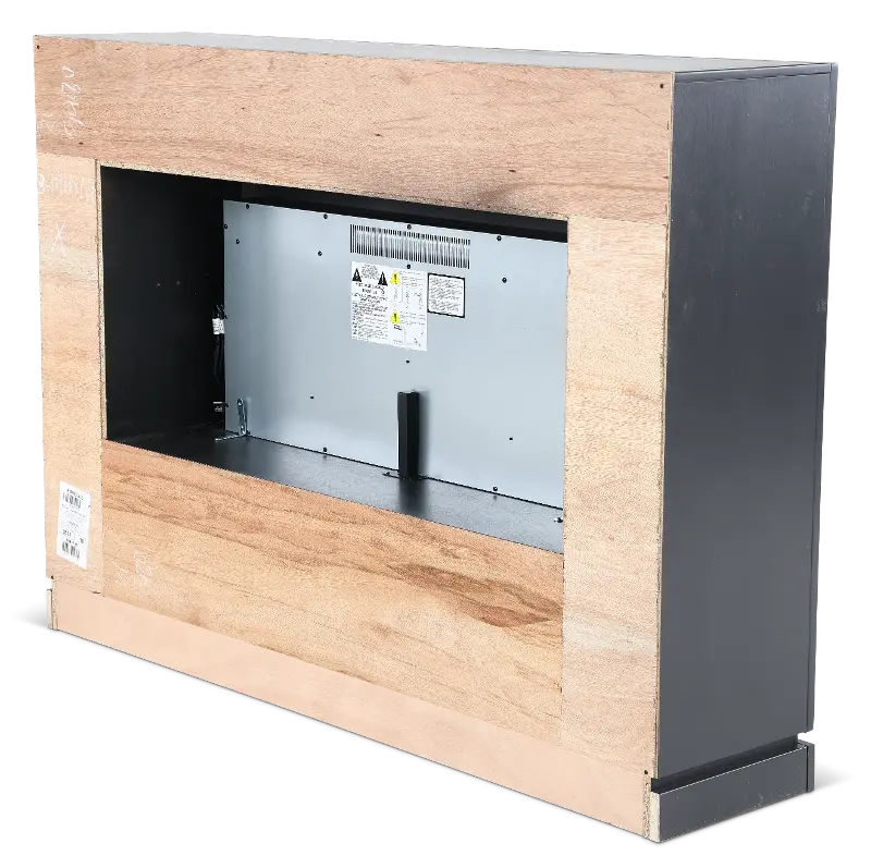 Wrapped in a rich seal‑skin black finish, its clean, minimalist lines frame a stunning 42" fireplace insert that lets you choose between sparkling clear crystals or a traditional log set. Tempered safety glass, automatic temperature control, and a powerful heater that warms up to 400 sq. ft. make it as practical as it is stylish, while adjustable flame brightness and effects let you set the perfect mood for movie nights or chilly winter mornings. And with the included remote control, comfort is always at your fingertips.