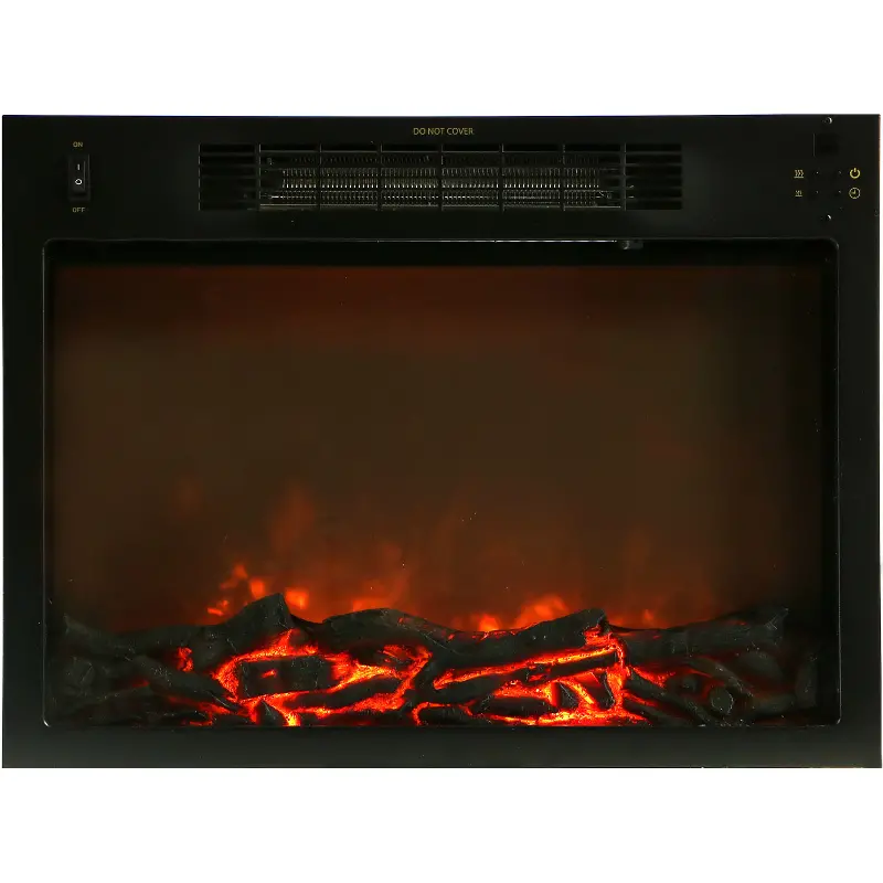 The clean lines, fluted pilasters, and crown molding are a few of the design details that add character to this handsome frame. The electric insert produces 5,115 BTUs of fan-forced heat that can quickly warm a 210 sq. ft. room. An elegant flame display dances across the back of the firebox, creating movement that is sure to catch your eye. Embers of light glaze across the logs within, adding highlights throughout the charred log display. The heat settings can be adjusted with a simple push of a button. During the warmer months, you can set the flames to display without heat, making it perfect to use all year long.