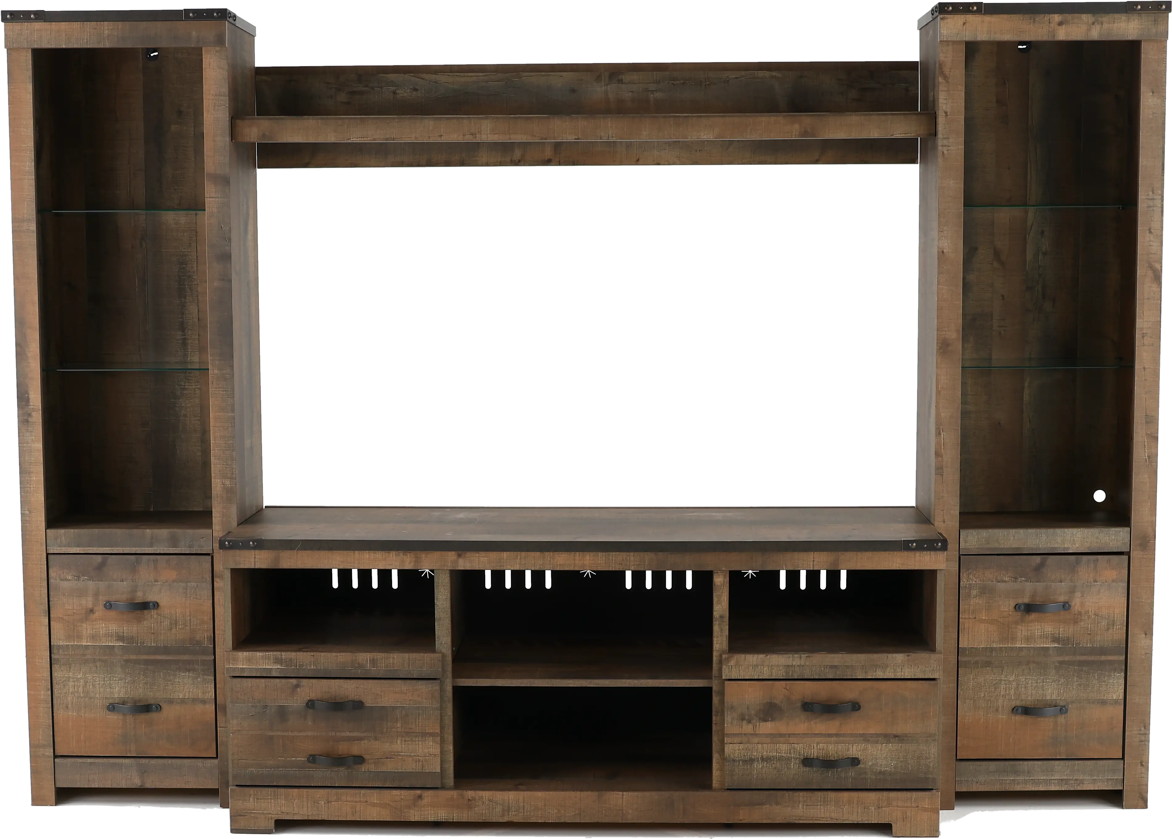 Trinell Natural Brown 4 Piece Rustic Oak Entertainment Center
