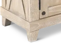 Design and style can be yours with the Rivan collection. This uniquely shaped bookcase pier is intended to be placed on the right-hand side of the Rivian Fireplace TV stand. The wheat-colored angled frame and light gray top are accented by darker hardware for contrast. Three open shelves offer ample room to display your books, plants, and decor. A roomy bottom cabinet helps keep wires and consols neatly tucked away. Add other pieces from this collection to pull it all together.