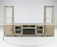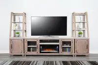 - Includes 2 bookcase piers and 74" TV stand with fireplace insert