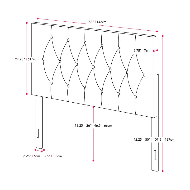 Padded with foam and styled with diamond tufted button detailing, it adds an element of sophistication to your bedroom. The wooden legs tuck behind the mattress and easily attach to your bed frame. Adjustable leg height allows you to fit this headboard into most standard Full/Double-sized bed frames, making it a straightforward upgrade to your current bedroom decor.
