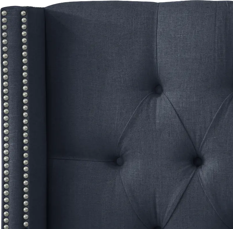 Abigail Navy Blue Diamond Tufted Wingback Queen Headboard - Skyline Furniture