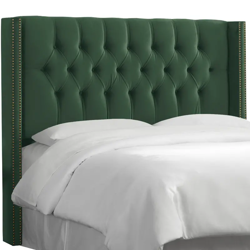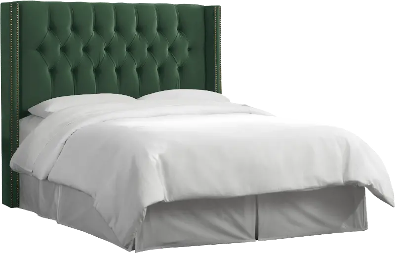 Abigail Green Diamond Tufted Wingback Queen Headboard - Skyline Furniture