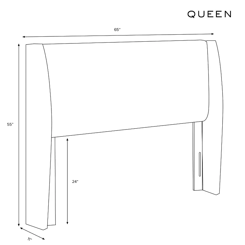 - Subtle rounded headboard top and curved wingback design
