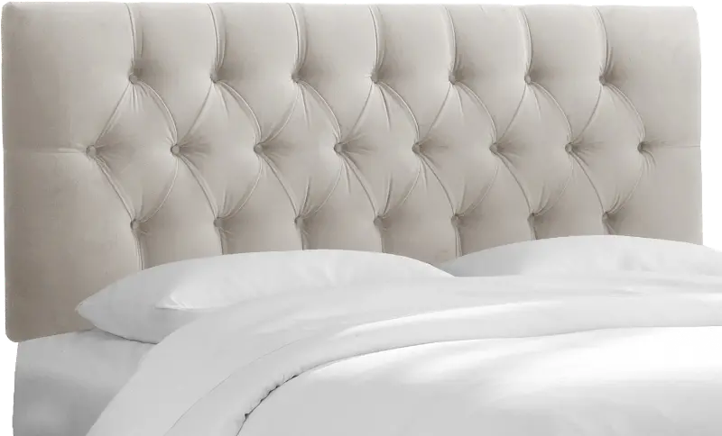 Julia Velvet Light Gray Tufted King Upholstered Headboard - Skyline Furniture