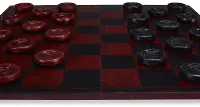 Made of mahogany and finished in a two-tone deep dark red and black, this game will be a fun addition to any room.