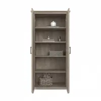 The Bush Furniture Key West Tall Storage Cabinet with Doors offers a practical organization solution that gives your home a touch of casual style.