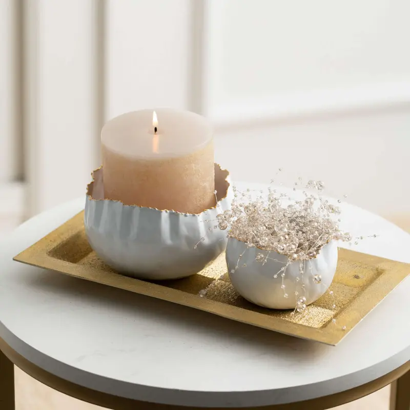 A statement piece all on their own or the perfect base for a centerpiece, this set will certainly enchant your home decor.