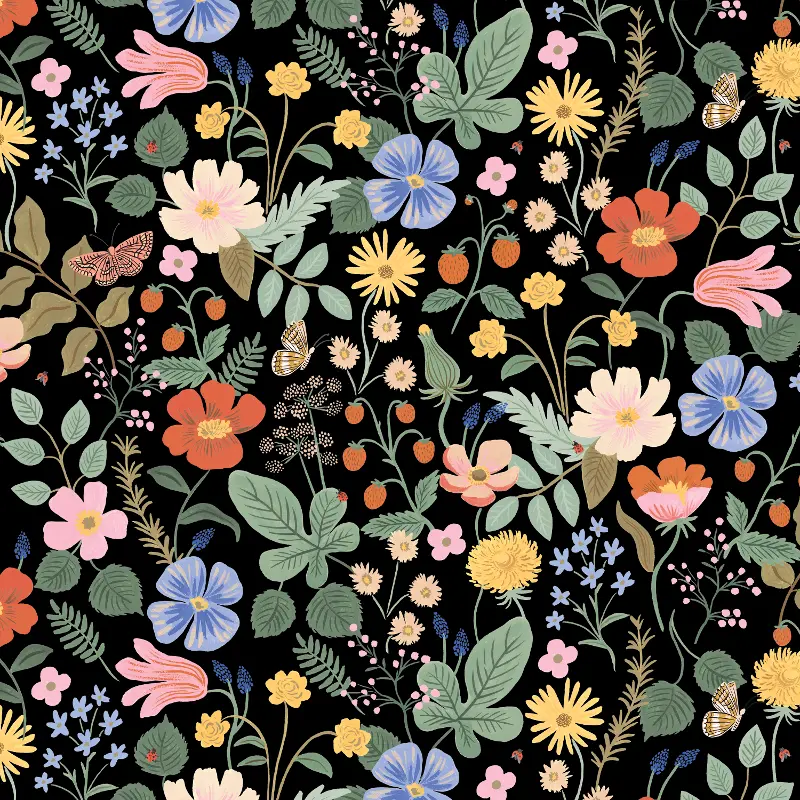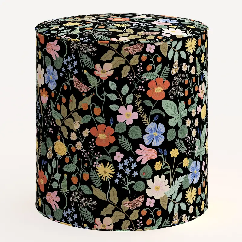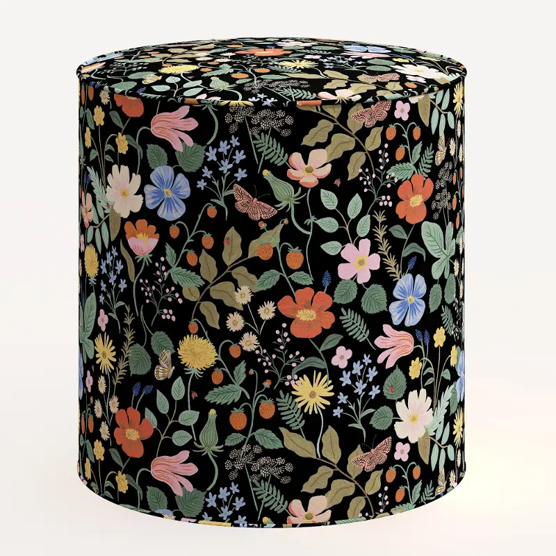Rifle Paper Co. Billie Black Strawberry Fields Round Ottoman