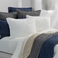 Queen Natural Pebble Beach king/California king quilt coverlet adds relaxed versatility and effortless layering to your bedding. Thoughtfully textured with a honeycomb weave and a lightweight luster, its garment-dyed indigo blue color will add a tasteful touch of dimension to your sleeping surface.