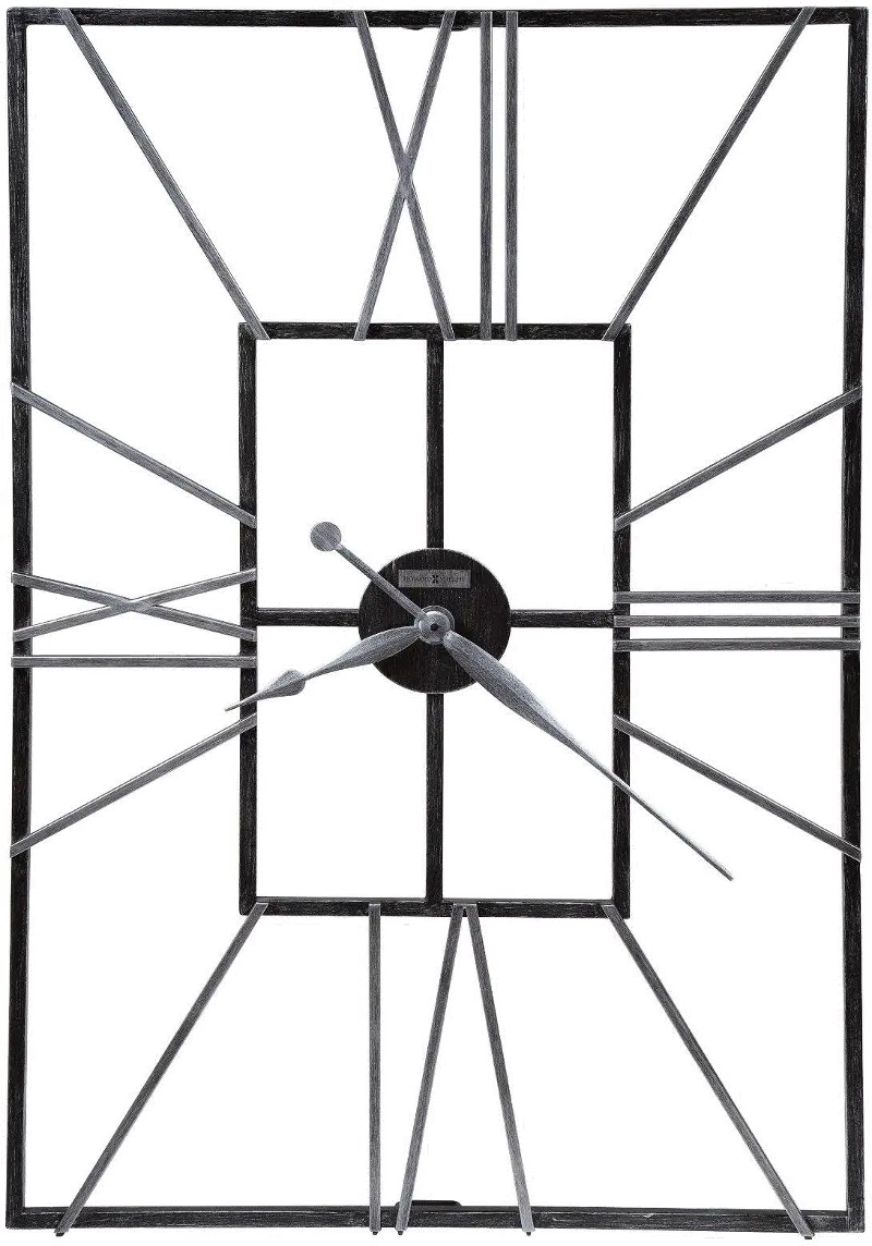 Oversized and rectangular in shape, this 35" wrought iron wall clock features a charcoal frame. Accented with aged nickel-finished applied Roman numerals and hour markers.
