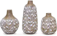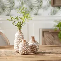 6 Inch Resin Brown and White Leaf Pattern Vase