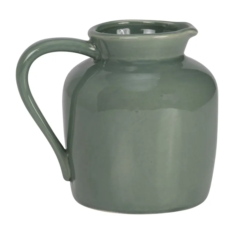 This dark sage pitcher vase is both functional and stylish. Complete with a shiny finish, this vase will beautify any space you place it in.