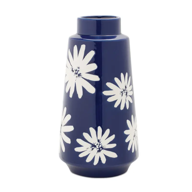 Large 11.75-Inch Blue and White Flower Ceramic Vase